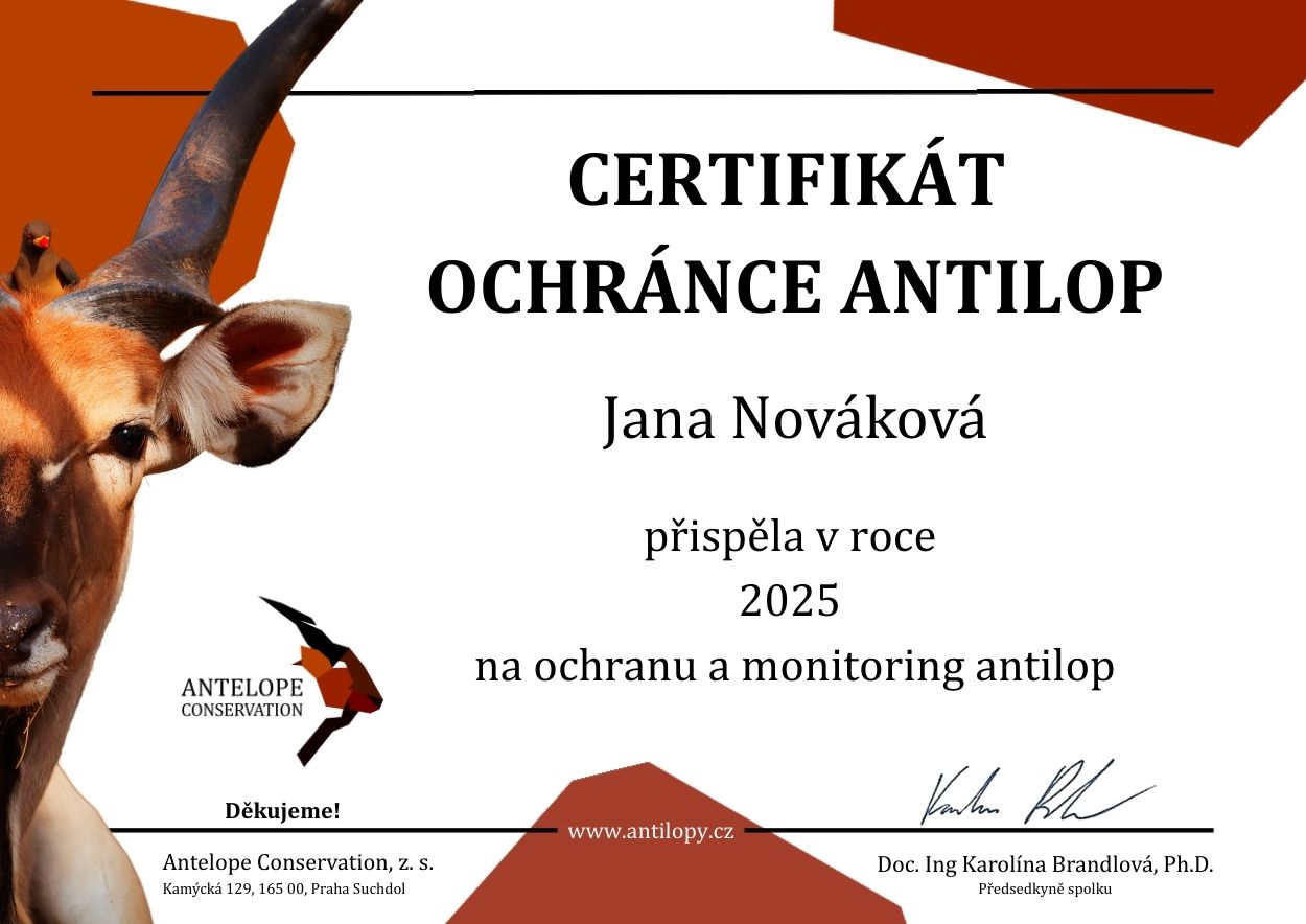Darovací certifikát - podpora ochrany antilop